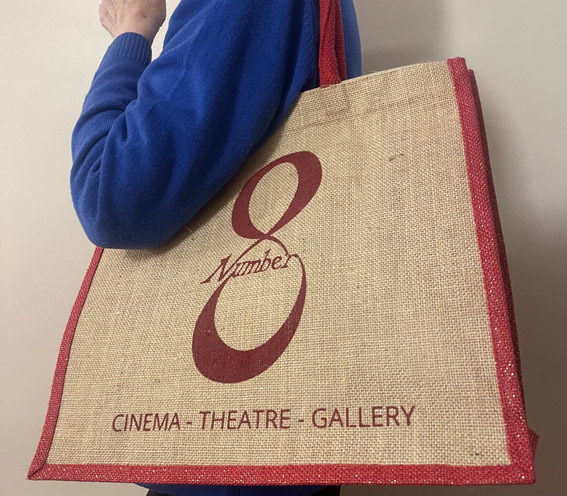 Bag yourself a Number 8 bag and shop in style! Add a bit of sparkle to your weekly shopping trips with one of your very own Number 8 jute bags with a red and gold sparkly trim. For only £7.50, you will not only be the talk of the town, but you will be giving back to the arts with your purchase.